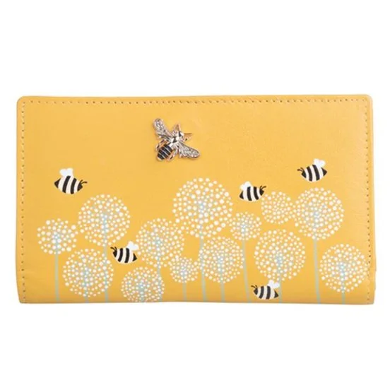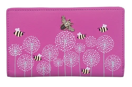 The main body of the purse is made of genuine soft leather in a rich colour. The front features a printed design of a bees among moon flowers. It also features a 3D Bee Detail in the middle on the front.