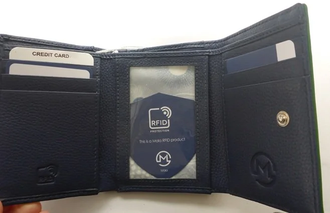 The main body of the purse is made of genuine soft leather. The purse is a flap over design which opens up to display the different compartments. There is also a zip up pocket on the back